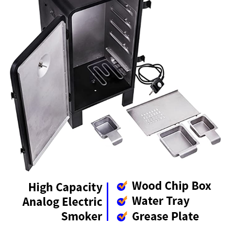 Tired of the hassle of traditional grilling and smoking? Prepare smoked meat in an instant with this High Capacity Analog Electric Smoker!