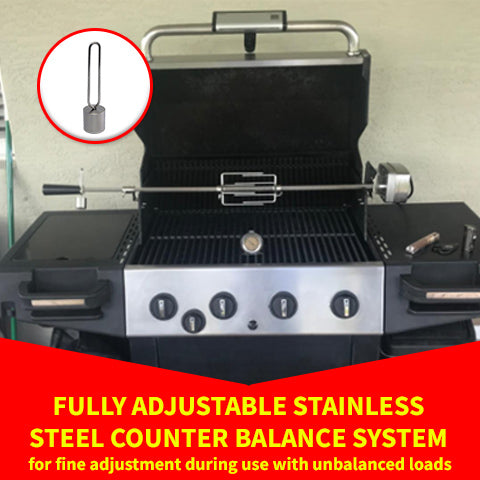 Ultimately the counterbalance weight is there to help smooth things out and fine-tune a bit, but the vast majority of balancing should occur during your mounting and trussing phase of the food to be cooked.