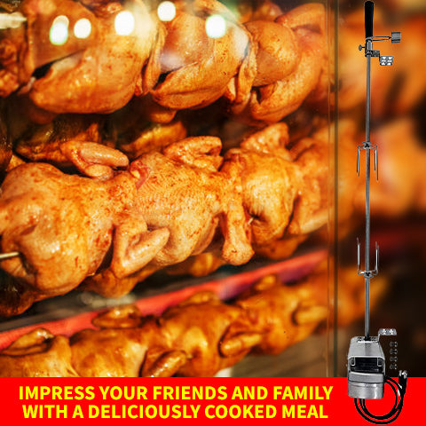 So whether you prefer chicken, turkey, beef, pork, or even the vegetarian route – with this BBQ rotisserie kit and attachments, your next rotisserie dinner is sure to stun your friends and family.